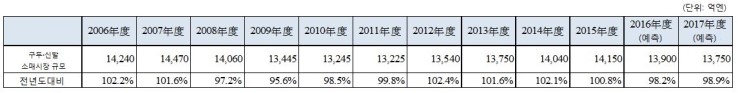 주 2. 2016년도, 2017년도는 예측치